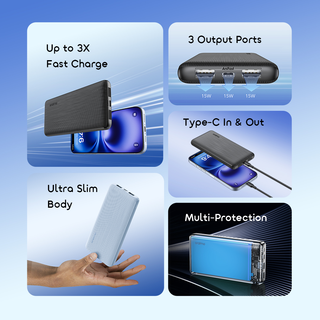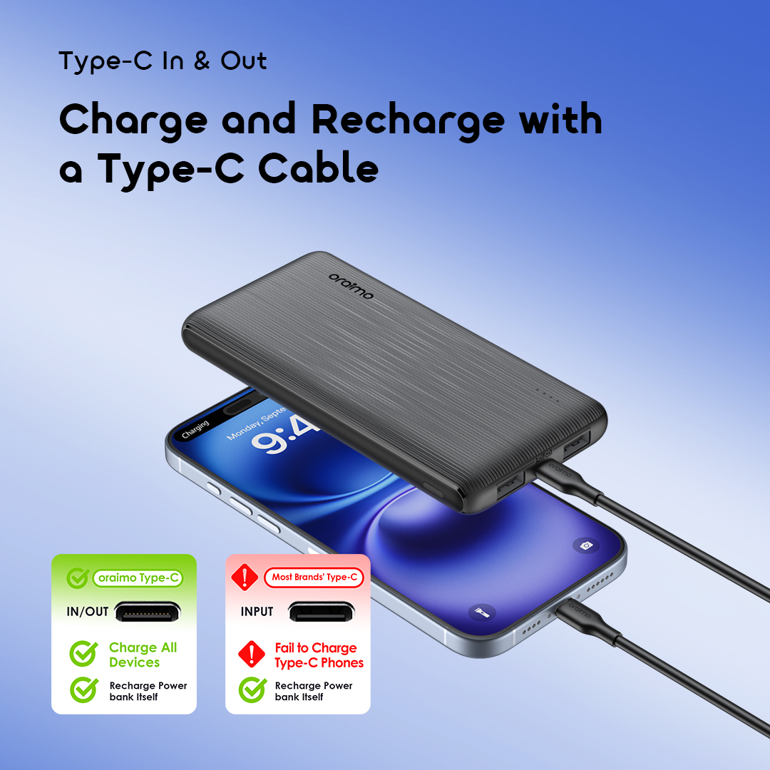 *Click the main button on the side of the power bank to check the remaining power. oraimo Lab test results.