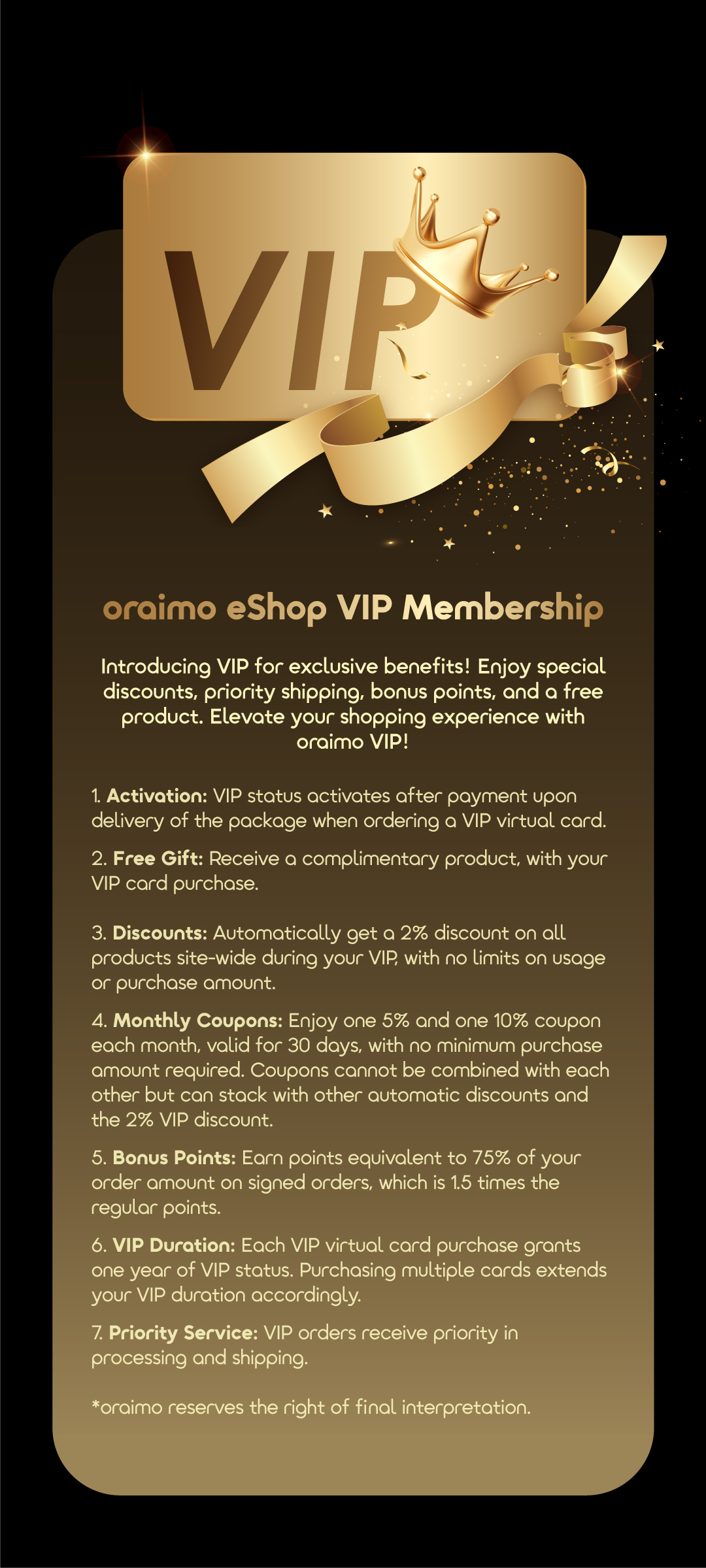 Note: When you purchase the VIP service, instead of receiving a physical VIP card, you'll get a complimentary product(OEP-320S-WHITE). Your VIP status will be activated once you sign for the delivery and complete the payment.